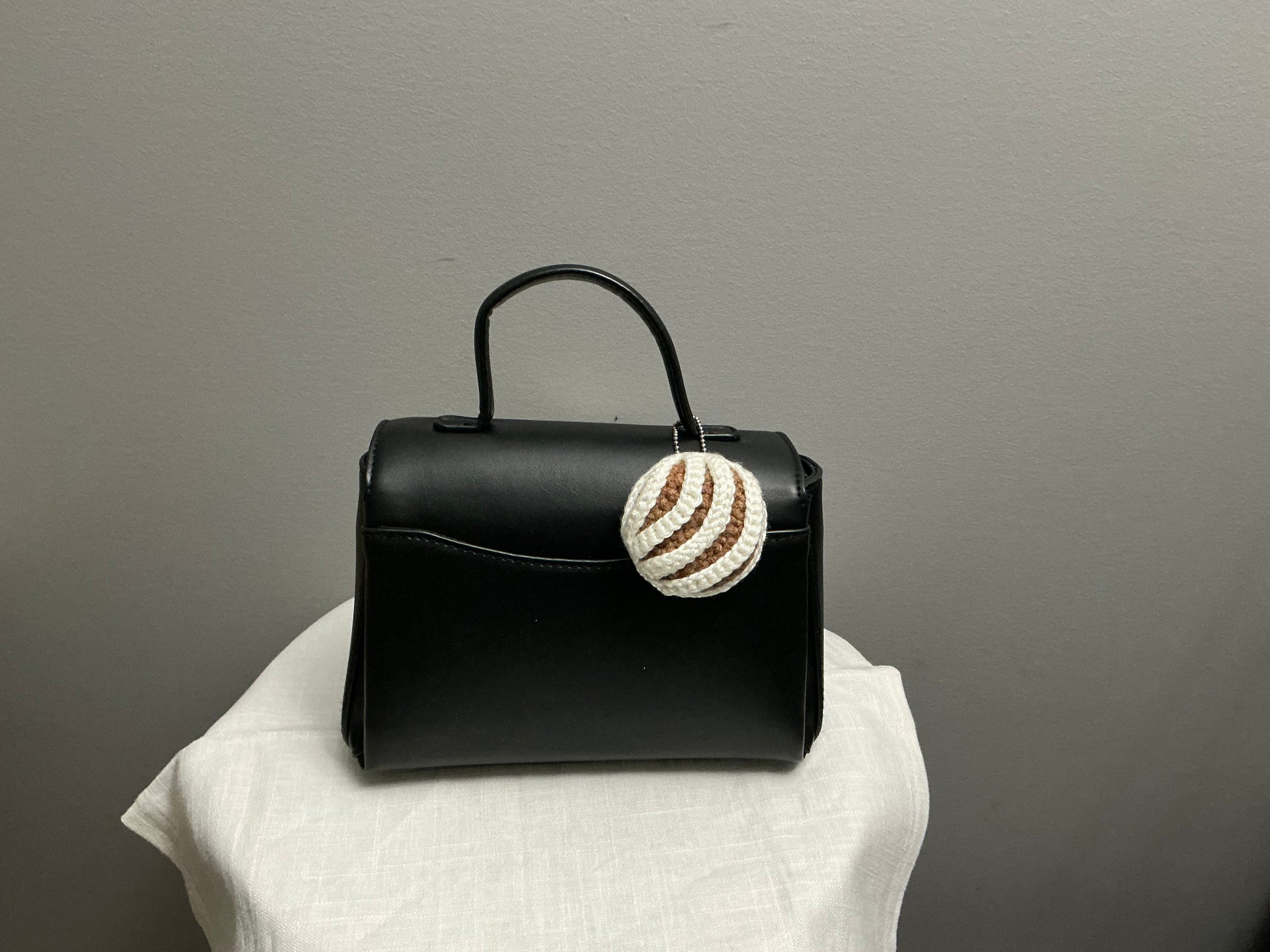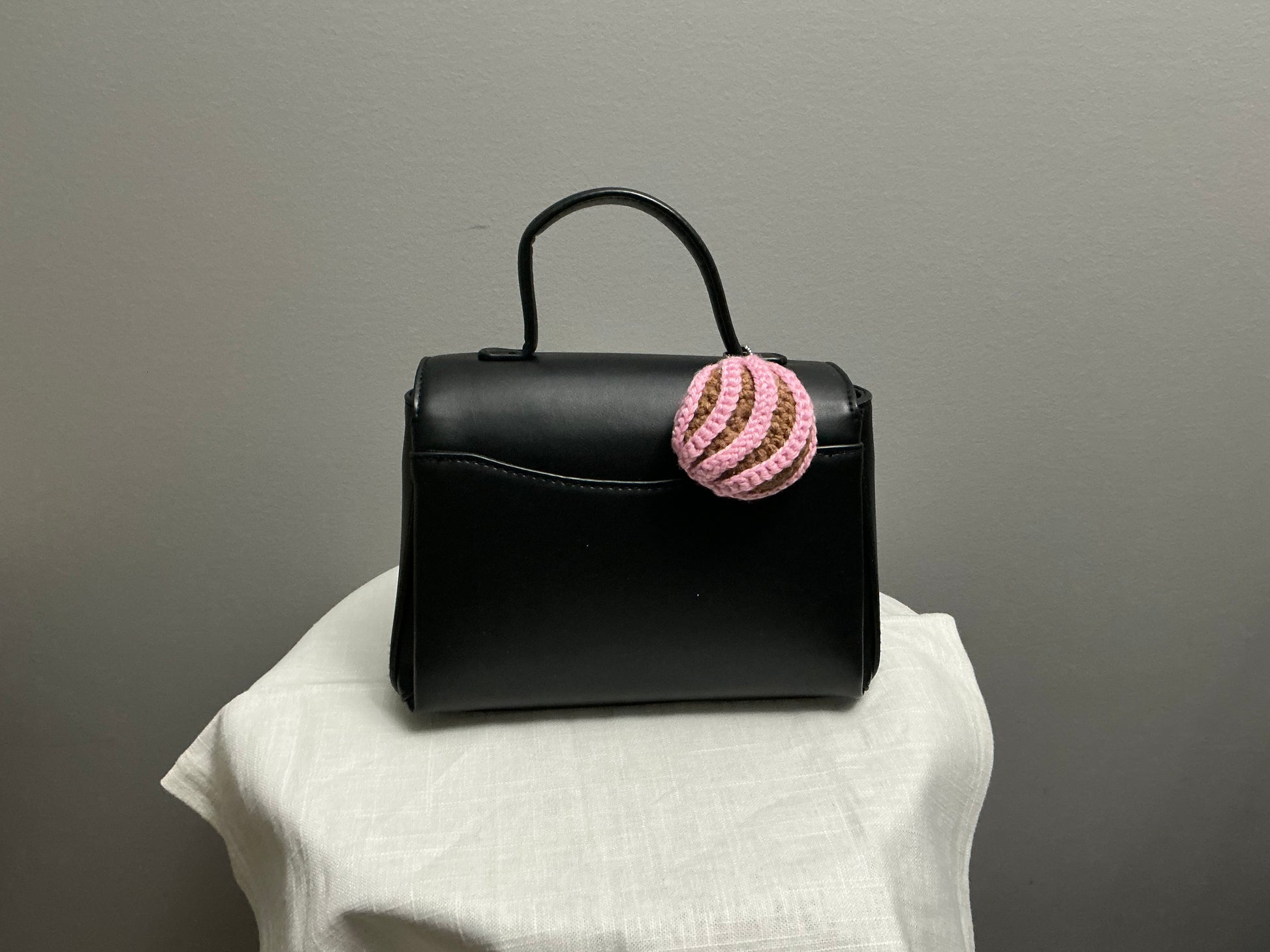 Handmade crochet concha hand bag charm approximately 2.5 inches x 2.5 inches. Comes in pink, yellow, chocolate (brown) or white.